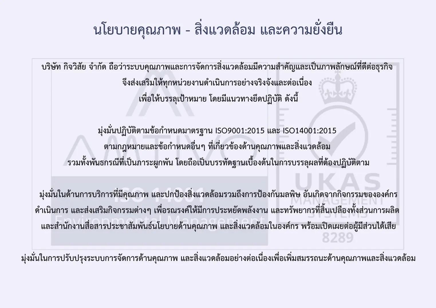 บริษัท กิจวิสัย จำกัด ดำเนินการมากกว่า 20 ปี เป็นผู้นำเข้า exclusive distributor เครื่องมือสำรวจ เครื่องทดสอบงานโยธา อย่างเป็นทางการแต่เพียงผู้เดียวในประเทศไทย เพื่อจำหน่าย ให้เช่า รับซ่อมโดยช่างผู้เชี่ยวชาญมากประสบการณ์ซึ่งได้รับการอบรมจากโรงงานผู้ผลิตโดยตรง