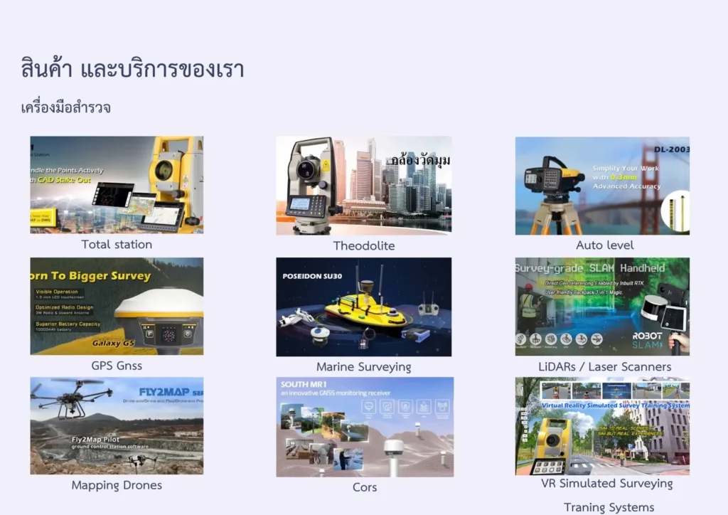 GNSS products, Theodolite, Total station, และเป็นผู้นำในการผลิตเครื่องมือสำรวจของจีนอันดับต้นๆ และขณะเดียวกัน SOUTH ยังได้รับการจัด